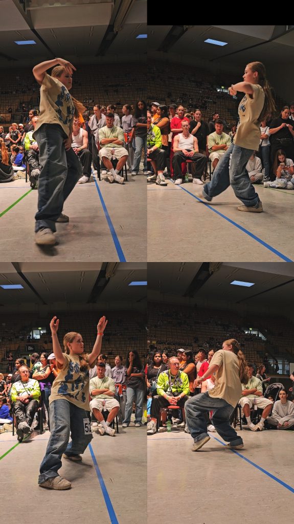 Das erste Battle gewann sie mit 3:0 Stimmen und das bedeutete den Einzug in die TOP 8. Im nächsten Battle war die Reise dann leider gegen die spätere Drittplatzierte zu Ende, mit Platz 8 unter 21 Startern (Jungen und Mädels nicht getrennt) war Anika zufrieden.