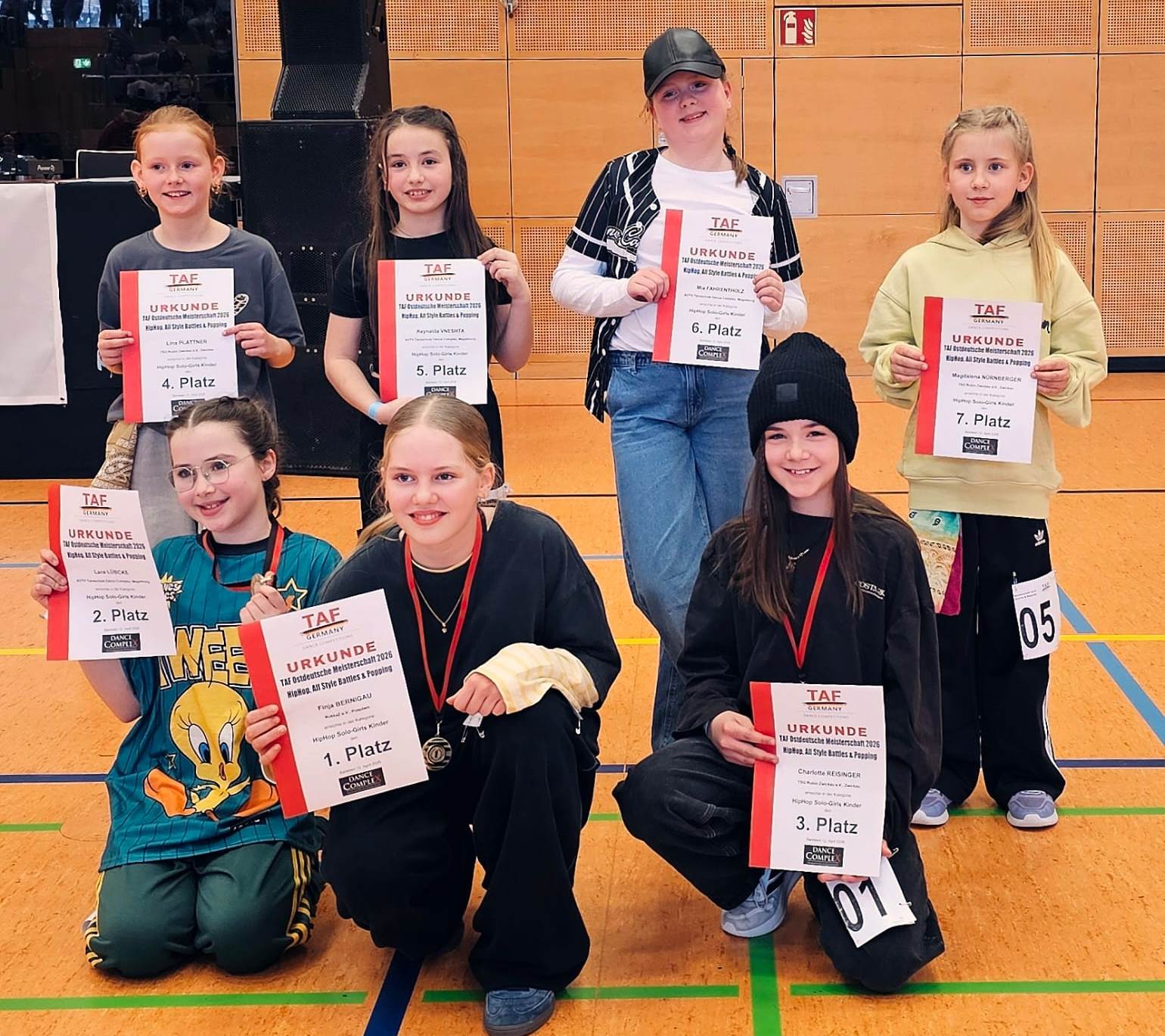 Bei den Kindern ertanzten sich Charlotte Reisinger den 3. Platz, Lina Plattner den 4. Platz und Magdalena Nürnberger den 7. Platz in der Kategorie Solo Freestyle in einem sehr starken Teilnehmerfeld.