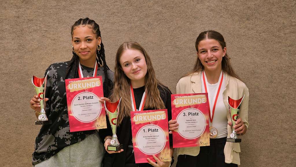 Sehr gut angenommen wurde bei Zuschauern und Tänzern der neue Wettbewerb im Solo Freestyle. Die Teilnehmer zeigten gleichzeitig ihre Interpretation der vorgegebenen Musik. In mehreren Runden wurden die Besten ermittelt. Bei den Junioren 2 gingen die ersten Plätze an die TSG. Anika-Sophie Gehrisch siegte klar vor Sarah Hoffmann-Gonzalez und Lia Emilia Müller. Diese drei Starterinnen hatten auch im Solowettbewerb mit eigener Choreografie das Finale erreicht. Hier siegte ebenfalls klar Anika-Sophie vor Sarah. Lia belegte Rang 5. Auf den 3. Platz kam Deborah Sens, ebenfalls von der TSG Rubin Zwickau e.V.