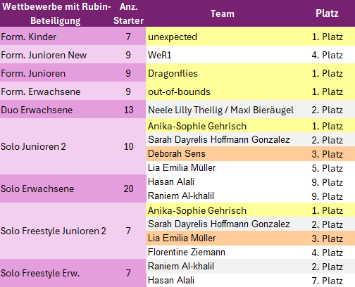 Abgerundet wurde das tolle Ergebnis durch einen zweiten Platz von Neele Lilly Theilig und Maxi Bieräugel im Duo der Erwachsenen. Auch sie starten das erste Jahr bei den Erwachsenen und freuten sich riesig über diesen tollen Einstieg.