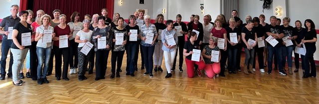 Line Dance stand nun auf dem Programm. Und dem Publikum wurde wieder einmal gezeigt, dass die Musikauswahl und die Choreografien sehr vielfältig sind. Am Ende konnten auch hier Auszeichnungen von Bronze bis Brillant vergeben werden.