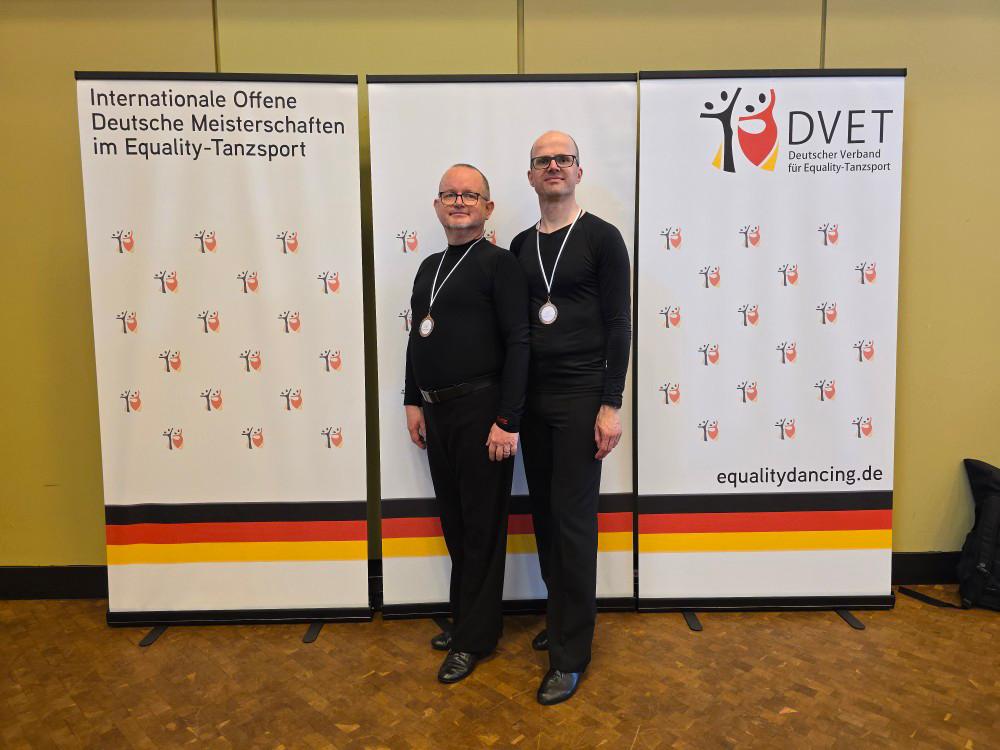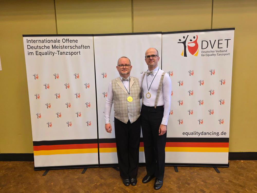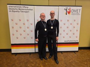 Am Pfingstwochenende fand die Deutsche Meisterschaft im Equality-Tanzen in den Disziplinen Standard und Latein statt. Stefan und Martin gingen am 7. Juni bei den Senioren im Latein an den Start.