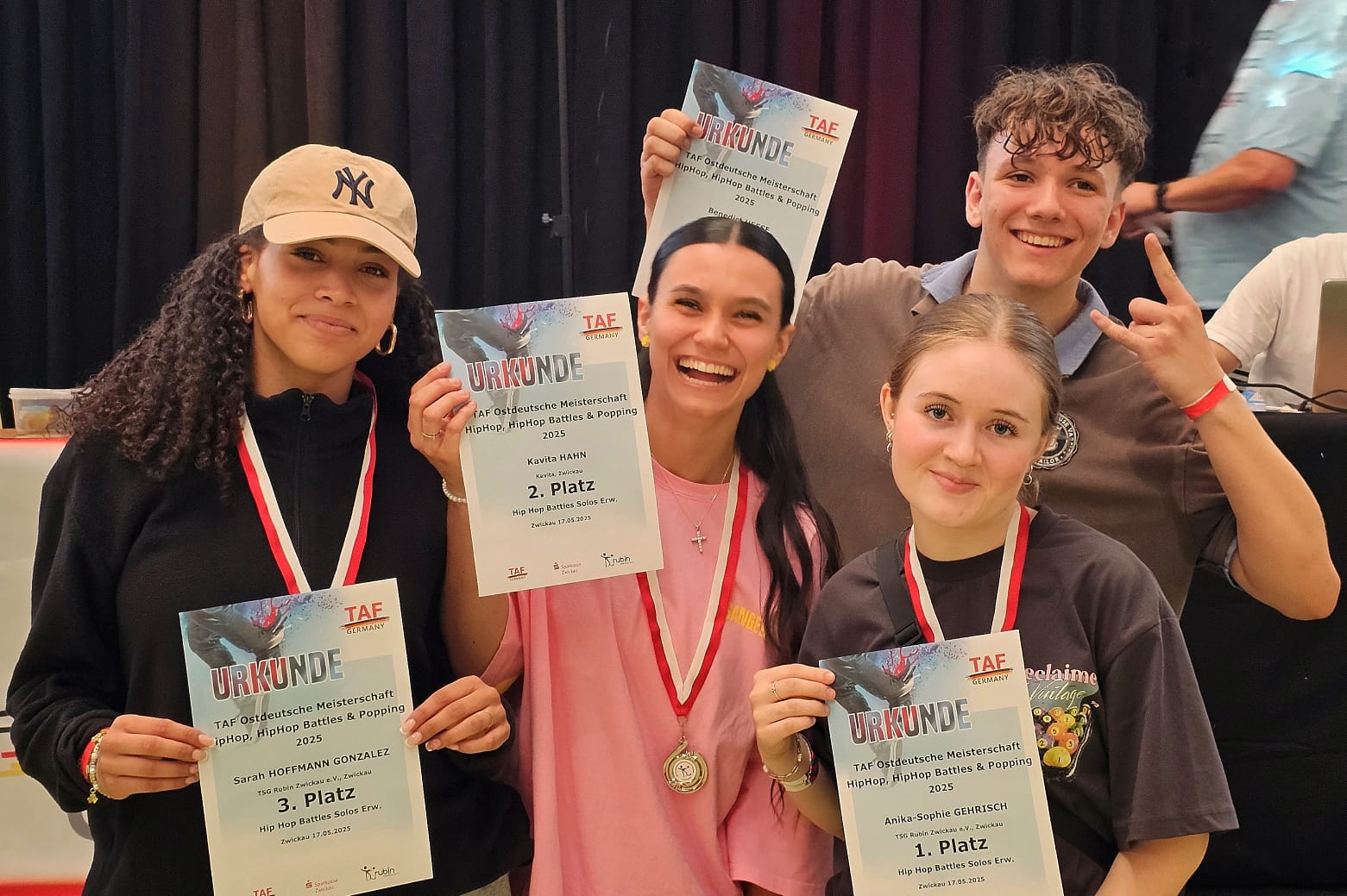 Nicht nur als Veranstalter der TAF Deutschen Meisterschaft im Streetdance Show und der TAF Ostdeutschen Meisterschaft im Hip-Hop, Popping und Battle kann die TSG Rubin Zwickau auf ein erfolgreiches Wochenende zurückblicken, sondern vor Allem die Tänzerinnen und Tänzer können stolz auf zahlreiche Titel und tolle Platzierungen sein.