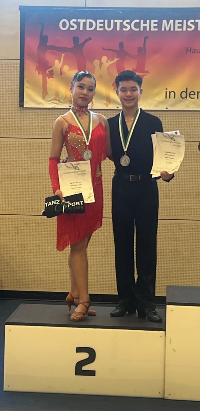 Schon routiniert sind Emely Minh Anh Do und Ngo The Vinh Tran. Sie tanzten ebenfalls in ihrer und der nächsthöheren Altersklasse. Nach Platz 3 der Landesmeisterschaft in ihrer Altersklasse durften sie sich über Platz 2 in der Jugend freuen.