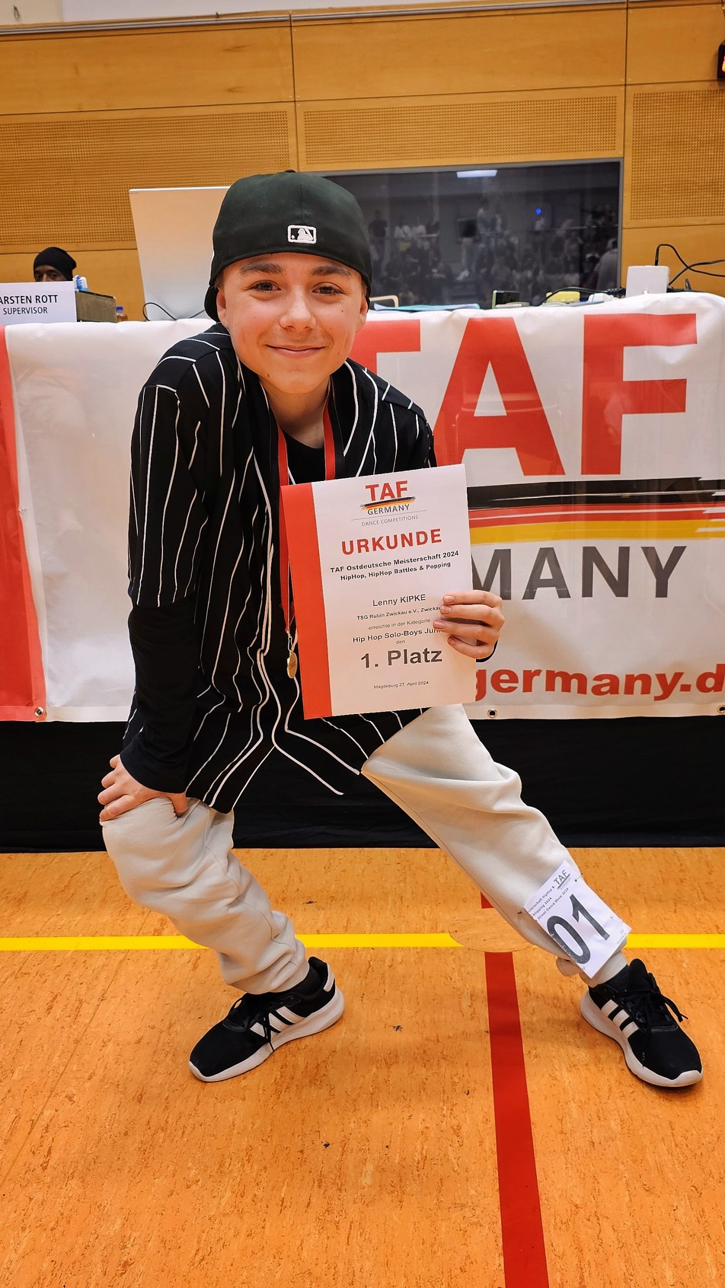 Den Bereich der Junioren – Solos dominierten ganz klar die beiden Zwickauer Starter. Anika-Sophie Gehrisch und Lenny Kipke konnten jeweils ihre Erfolge aus dem Vorjahr wiederholen und dominierten die Konkurrenz klar. Anika wurde zweifache Ostdeutsche Meisterin im Solo und im Battle und Lenny sicherte sich ebenfalls mit allen Einsen den Titel im Solo der Jungen.