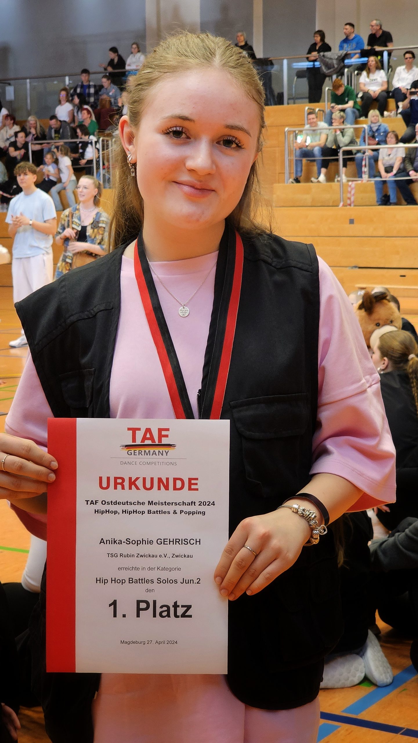 Zu Beginn der Meisterschaftssaison 2024 hieß es am Samstag für 34 Tänzer der TSG Rubin „Auf nach Magdeburg“ zur TAF Ostdeutschen Meisterschaft. In der ausverkauften Barlebener Mittellandhalle versammelten sich die Tänzer zum Wettbewerb um die Krone des Ostdeutschen Meisters in zahlreichen Disziplinen des Streetdance.