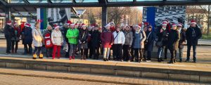 Unterwegs mit dem Triebwagen Gotha TW 125 und Beiwagen 233, beide Baujahr 1960, waren sie auf Glühweinfahrt und zum Tanzen. Egal wo, sie sind immer gut aufgelegt. Besonders beschwingt natürlich durch ein köstliches warmes Getränk, kredenzt von den „Freunden des Nahverkehrs“, welche für den Erhalt historischer Fahrzeuge sorgen und diese dem Anlass entsprechend liebevoll schmückten.
