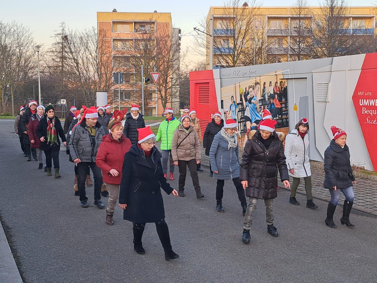 Am Freitag, den 13.12.2024, nachmittags, könnte es sein, dass der eine oder andere Bewohner von Neuplanitz verwundert aus dem Fenster schaute und weihnachtsbemützte Linedanceer der TSG Rubin beobachtete.