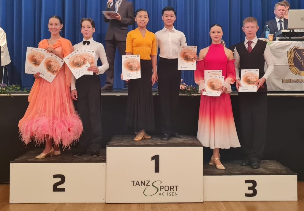 Am 14. September 2024 fanden die Dresden Dance Days in Weinböhla statt. Ngo The Vinh Tran und Emely Minh Anh Do waren in ihrer und der höheren Altersklasse gemeldet. Leider fand nur die höhere JUN II C statt. Hier konnten sie in drei Tänzen siegen. Lediglich im Slow Foxtrott mussten sie einem Paar ganz knapp den Vortritt lassen. Mit diesem tollen Ergebnis holten sie den Sieg nach Zwickau.