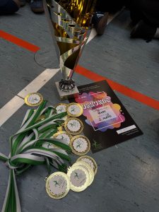 „Die Stimmung war mega und die Halle komplett ausverkauft.“ berichtet Trainerin Alicia. Das Team konnte die tolle Atmosphäre für sich nutzen und zeigte eine tolle Leistung. Belohnt wurden sie mit Silber.
