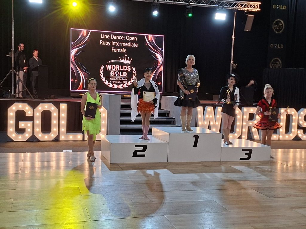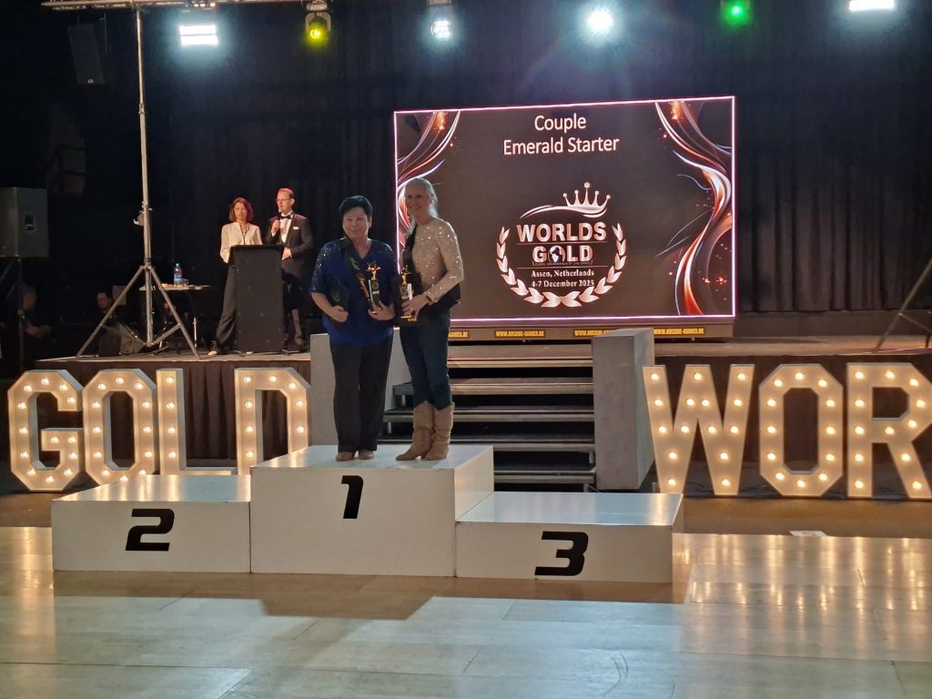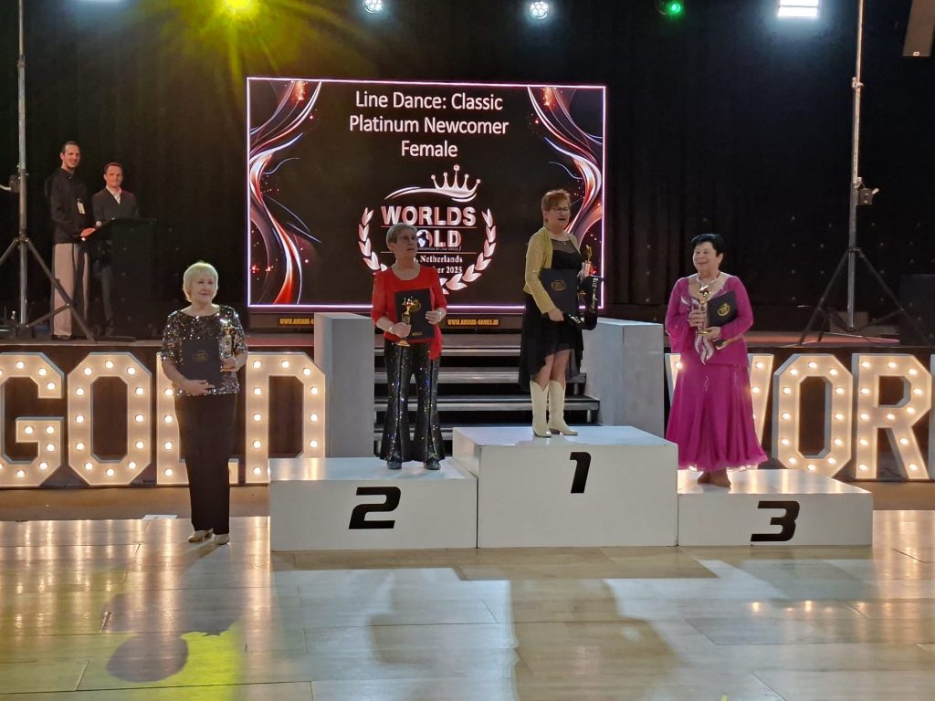 Am Freitag erreichte Violetta Schlemmer in der Kategorie Linedance Classic Ruby Intermediate Female dann sogar Platz 3, „obwohl mir diese Kategorie gar nicht ganz so gut liegt“ freut sie sich. Sylvia Gell erreichte in der Kategorie Linedance Open Platinum Newcomer Female einen 4.Platz . Am Samstag konnte sie dann mit ihrer Tanzpartnerin Gabriele Sauer-Burchhardt vom ESV Lokomotive Chemnitz in der Kategorie Couple Dance Starter Emerals den Weltmeistertitel holen. Auch für diese Beiden war es das erste Jahr im Partnerdance. Wobei es für Gabriele besonders schwierig war, die führende Rolle zu übernehmen, denn sonst tanzt sie im Standard-Paartanz erfolgreich mit ihrem Tanzpartner.