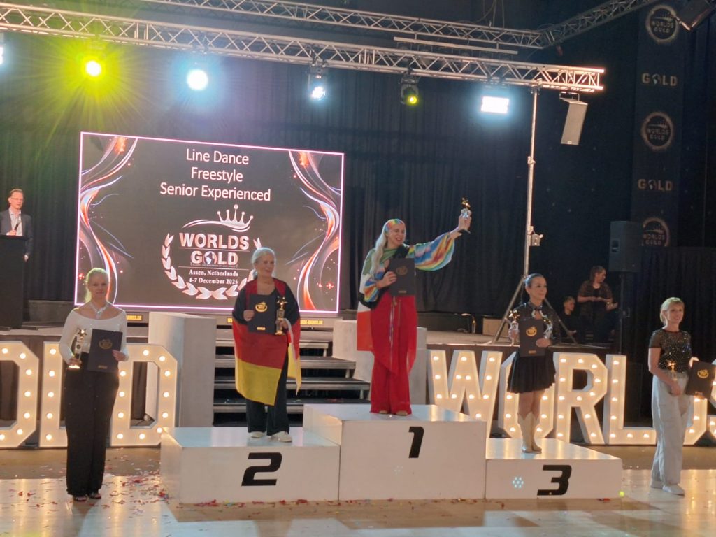 Vier aufregende Tage liegen hinter drei Tänzerinnen der TSG Rubin Zwickau. Violetta Schlemmer, Sylvia Gell und Uta Rösner nahmen an der Weltmeisterschaft im Country & Western Dance der G.O.L.D. Organisation in Assen teil. Nachdem sie sich über das Jahr bei drei internationalen Turnieren u.a. in Österreich, Tschechei und Spanien die Qualifikation ertanzt hatten, ging es am 3.12.2025 nach Assen zum größten Turnier des Jahres. 437 Tänzer aus 19 verschiedenen Nationen tanzten an vier Tagen in verschiedenen Kategorien um den Weltmeistertitel. Nach Tschechien war Deutschland mit 66 Tänzern das meist vertretene Land.