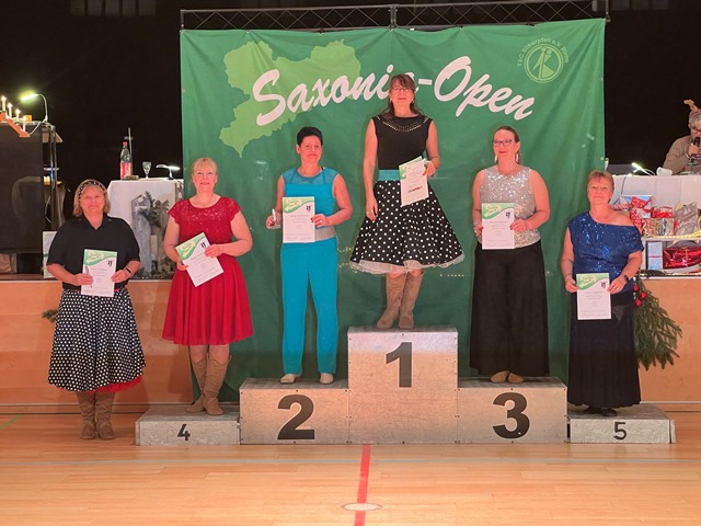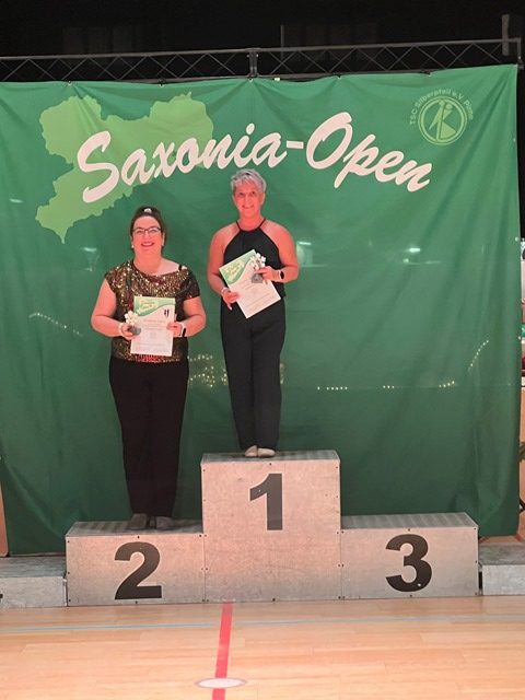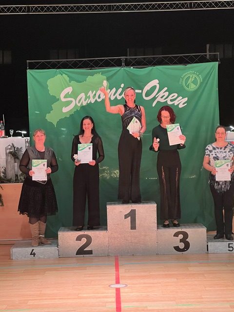 Für vier Tänzerinnen aus Zwickau war es das allererste Turnier im Linedance. Sie waren beeindruckt von der Vielfalt der Kategorien und natürlich sehr aufgeregt. In der Kategorie Social Silver Female musste aufgrund der hohen Teilnehmerzahl eine Vorrunde getanzt werden. Die Zwickauerinnen konnten sich alle 3 über den Einzug ins Finale freuen und Sylvia Hergert erreichte am Ende Platz 5. Nadine Seidel startete in der Kategorie Social Diamond Female, zeigte sich wettkampfstark und erkämpfte sich den Sieg. Sie wurde Sächsische Landesmeisterin. „Ich habe gedacht, sie haben mich vergessen, als ich nicht zur gleich zur Siegerehrung gerufen wurde. Dabei habe ich gewonnen. Ich brauch ein paar Tage, um das zu verarbeiten“ erklärte sich glücklich.